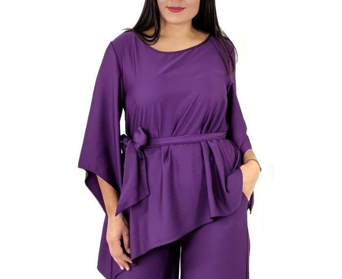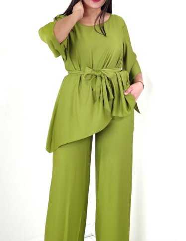 ANGLED CAPE SLEEVE TOP AND MATCHING PANTS