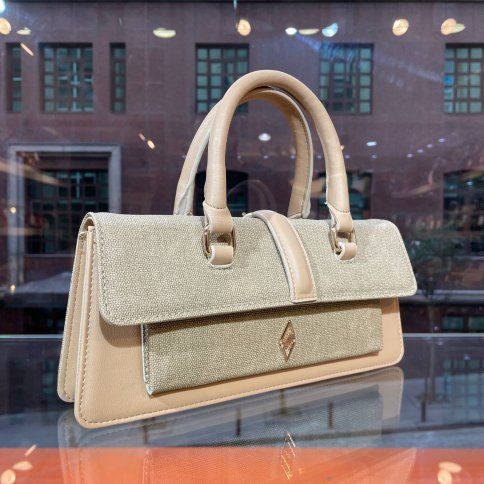 2 TONE COLOR FLAP FRONT BAGQUETTE BAG