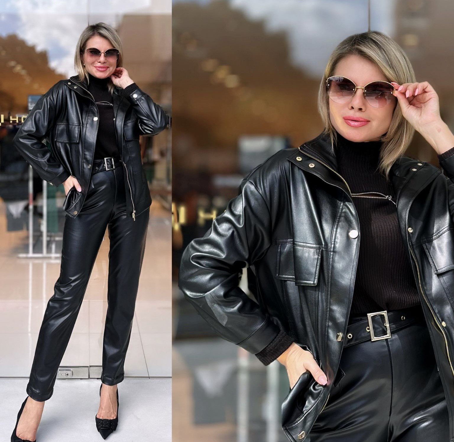 CARGO STYLE SNAP FRONT FAUX LEATHER JACKET