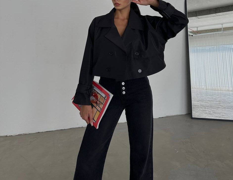 COTTON GLOSSY DOUBLE BREASTED CROP JACKET