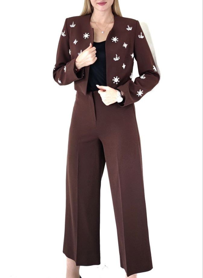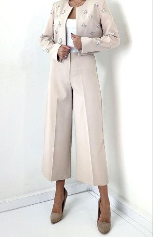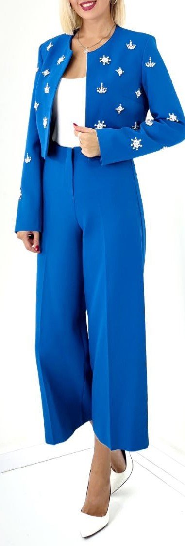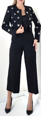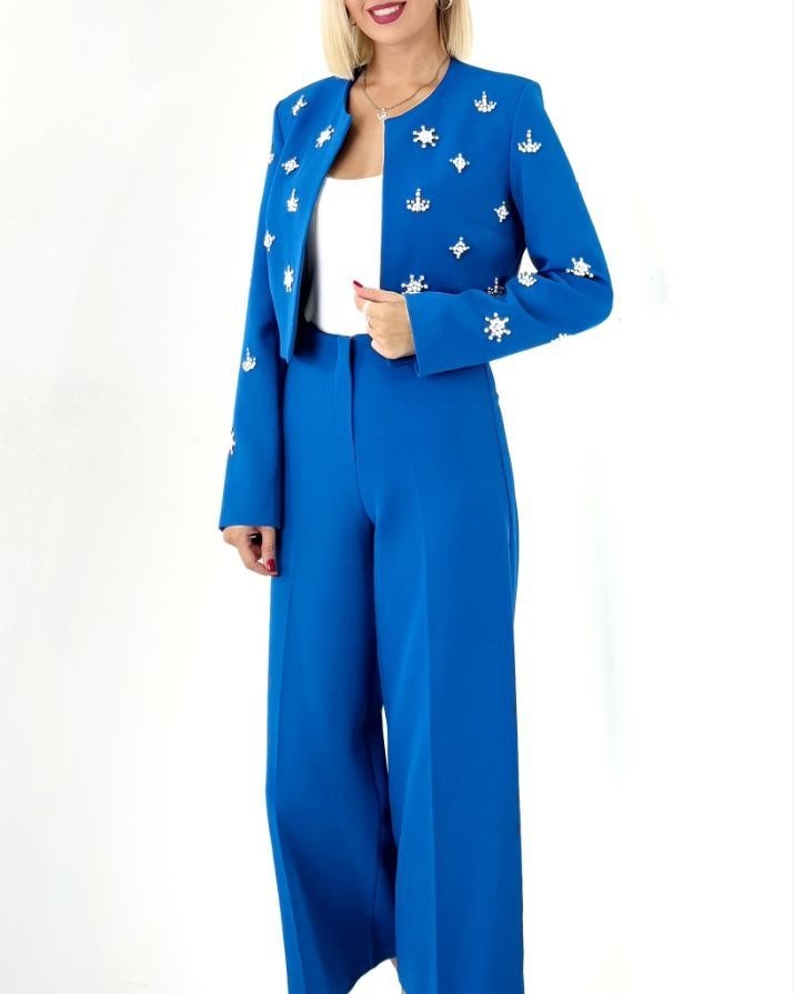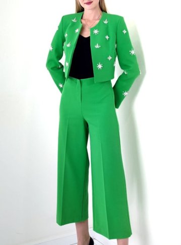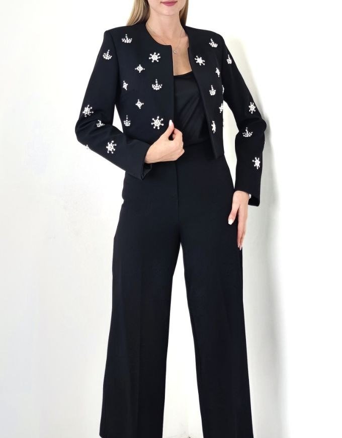 CROP DIAMANTE STUDDED JACKET AND CROPPED FLARED PANTS