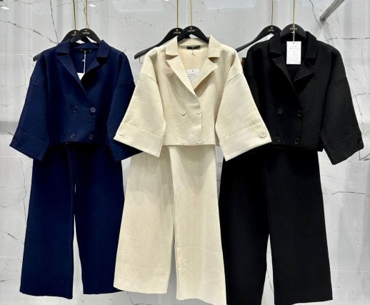 CROP DOUBLE BREASTED BLAZER AND MATCHING PANTS