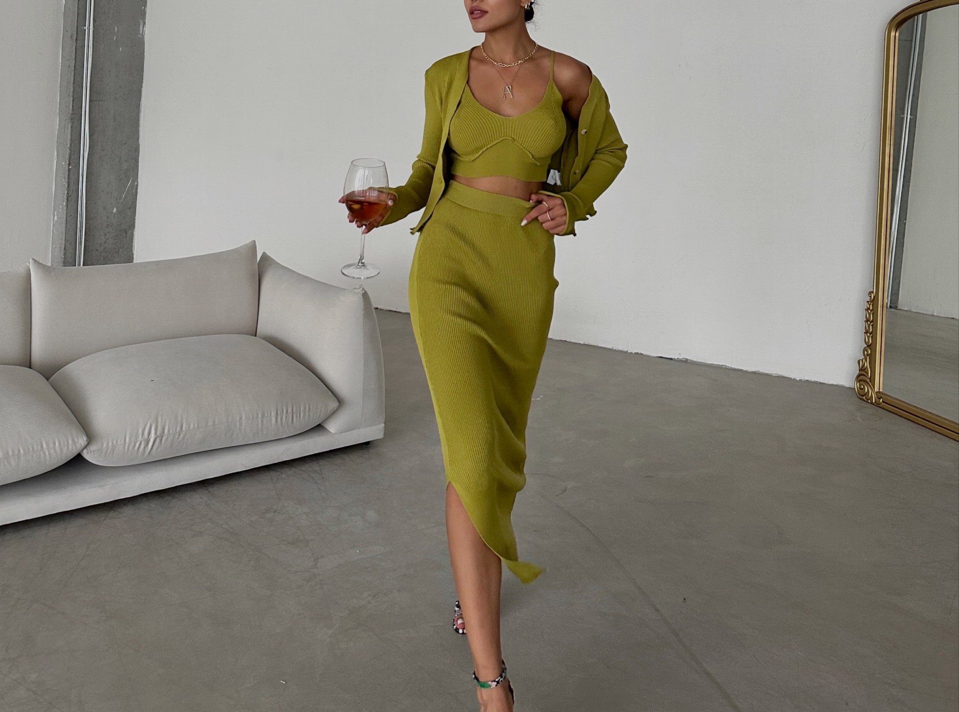 CROP JACKET OVER KNIT TANK AND MIDI BODY CON SKIRT