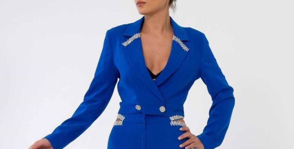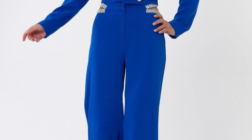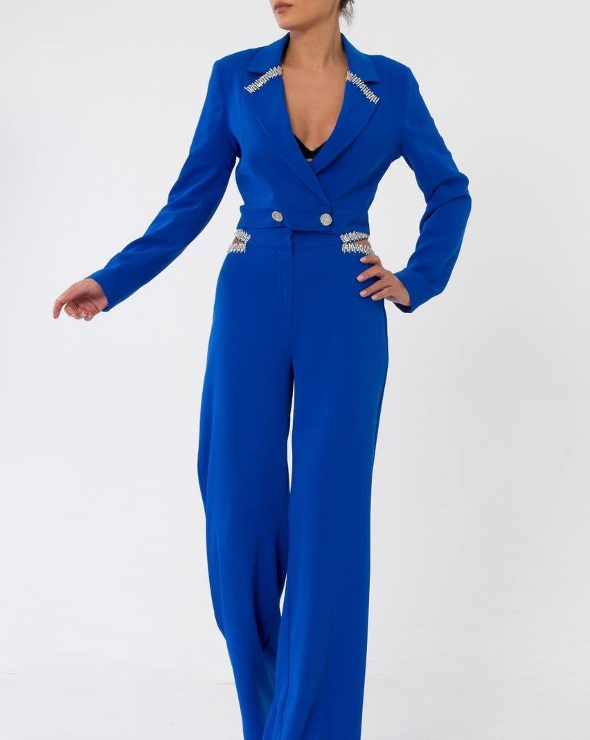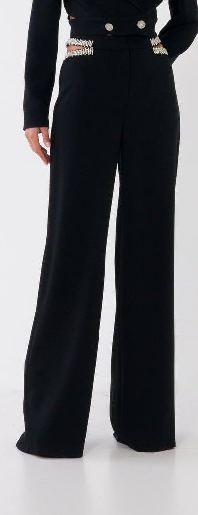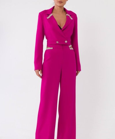 CROP JACKET WITH DIAMANTE DETAIL AND PANTS WITH DIAMANTE CUTOUTS