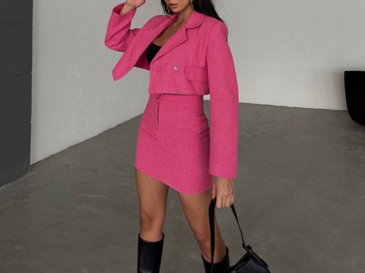 CROP JACKET WITH POCKET DETAIL AND MATCHING MINI SKIRT
