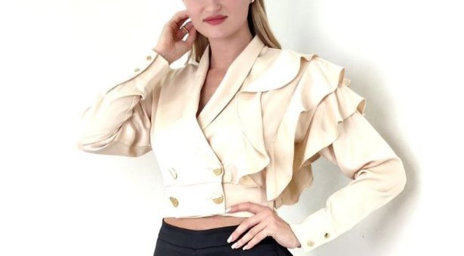 CROP JACKET WITH SIDE RUFFLE SLEEVE
