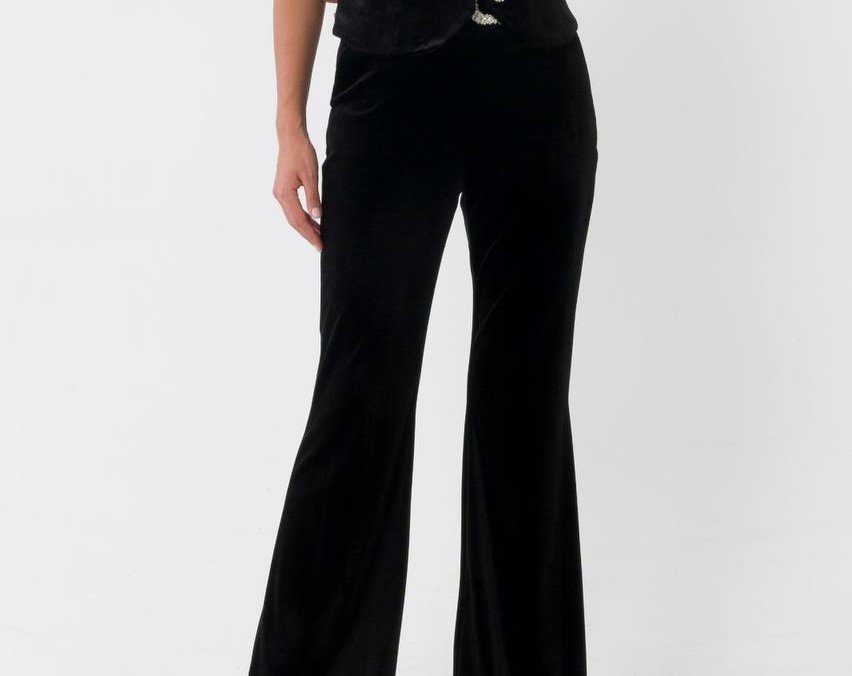 CRUSHED VELVET FLARED PANTS