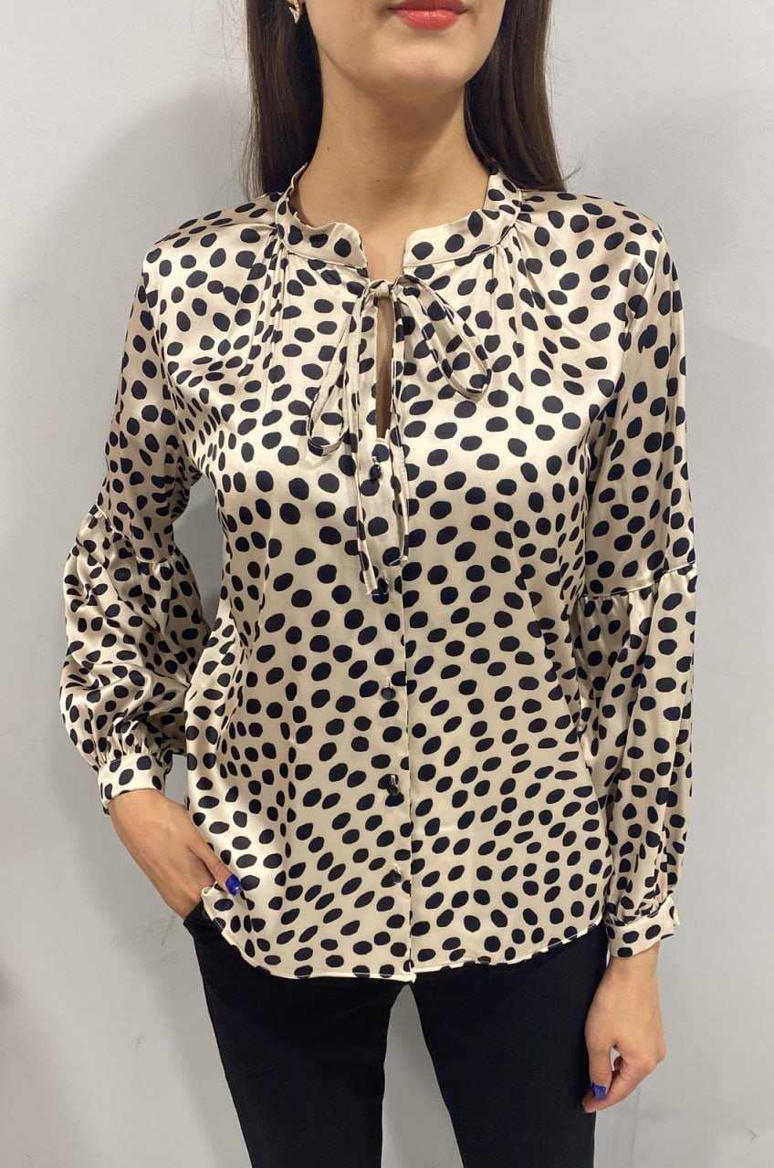 CURVED SILKY BLOUSE WITH TIE NECKLINE