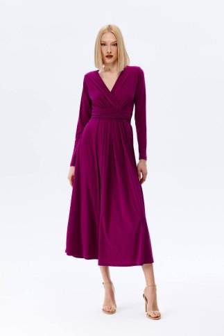 SILKY MIDI V NECK WRAP FLARED DRESS