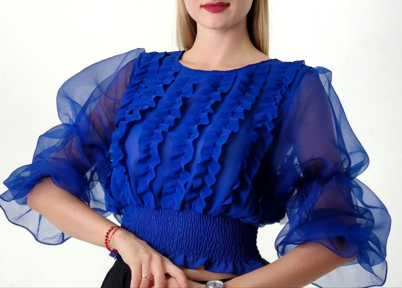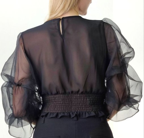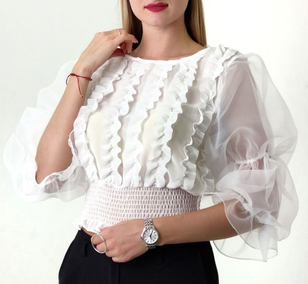 ELASTIC CROP SHEER RUFFLE BLOUSE