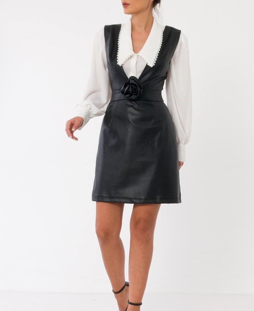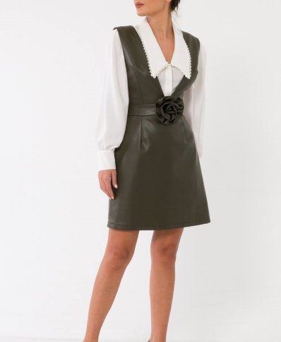 FAUX LEATHER SLEEVELESS FLARED DRESS