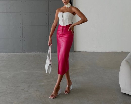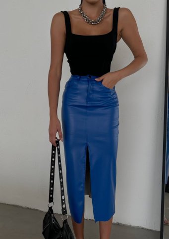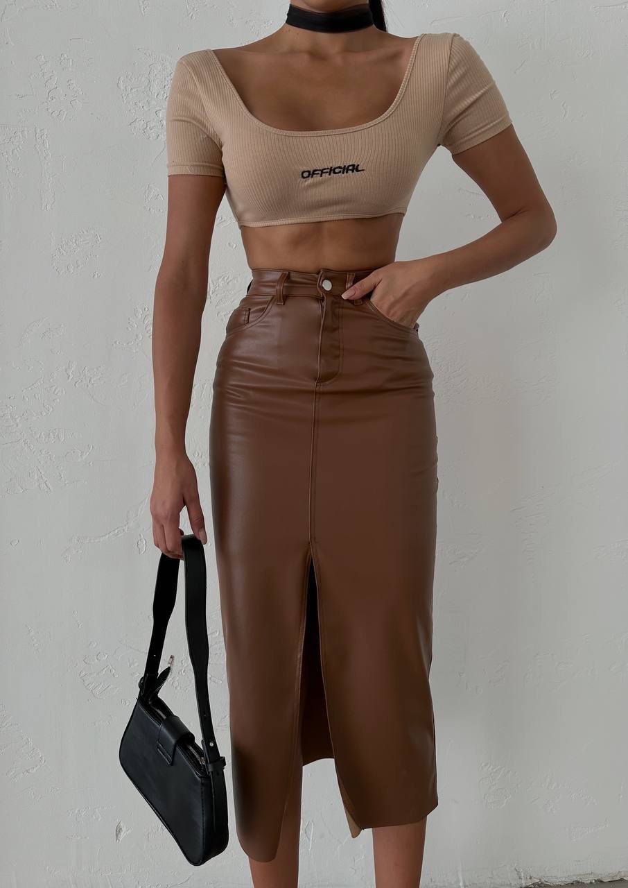MIDI FAUX LEATHER FRONT SLIT SKIRT