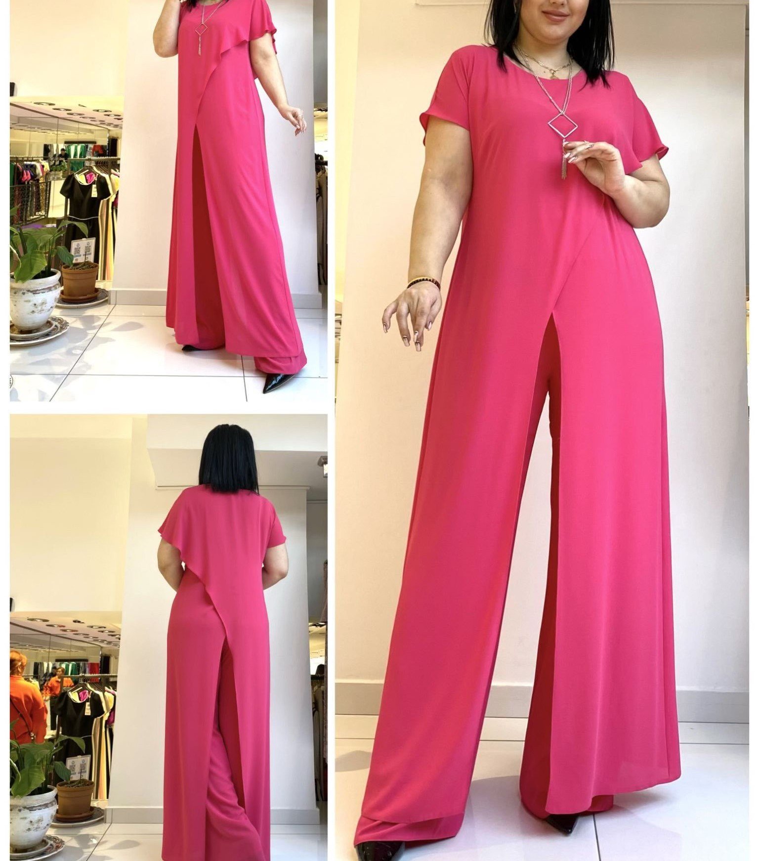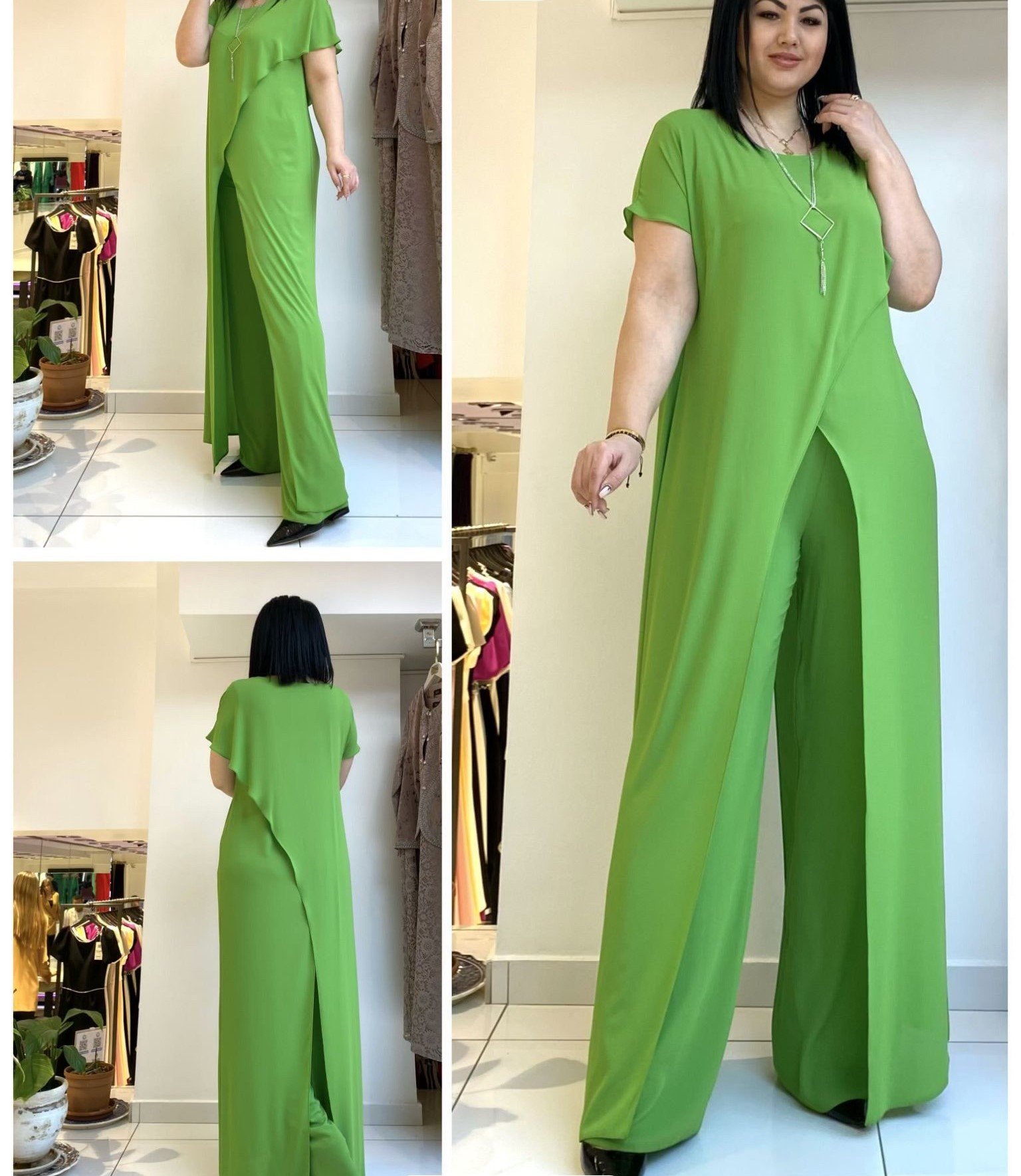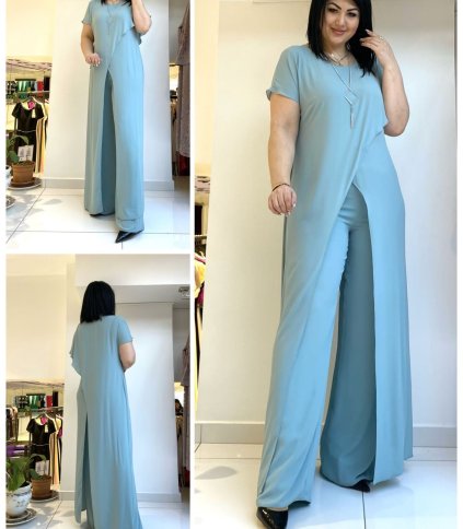 SHORT SLEEVE LONG TOP WITH OPEN FRONT AND MATCHING PANTS