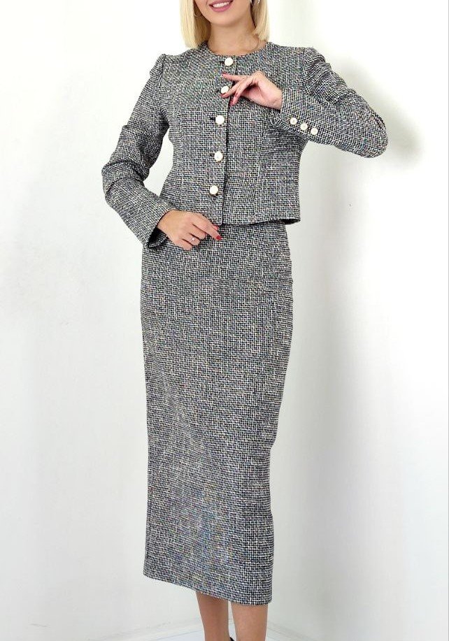 TWEED PATTERN CROP JACKET AND BODY CON MIDI SKIRT