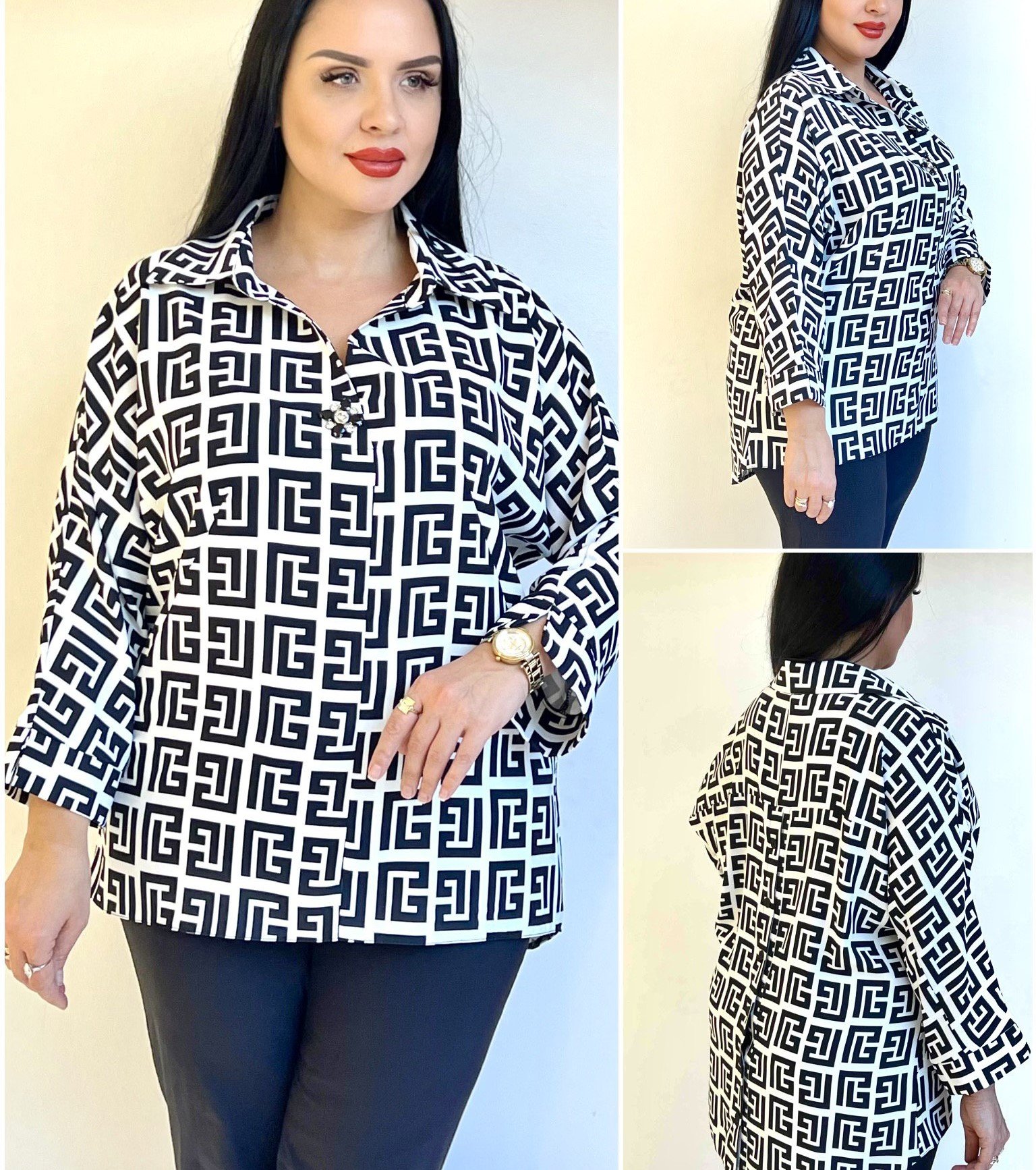 V NECK PATTERNED TOP WITH BUTTON FRONT BACK