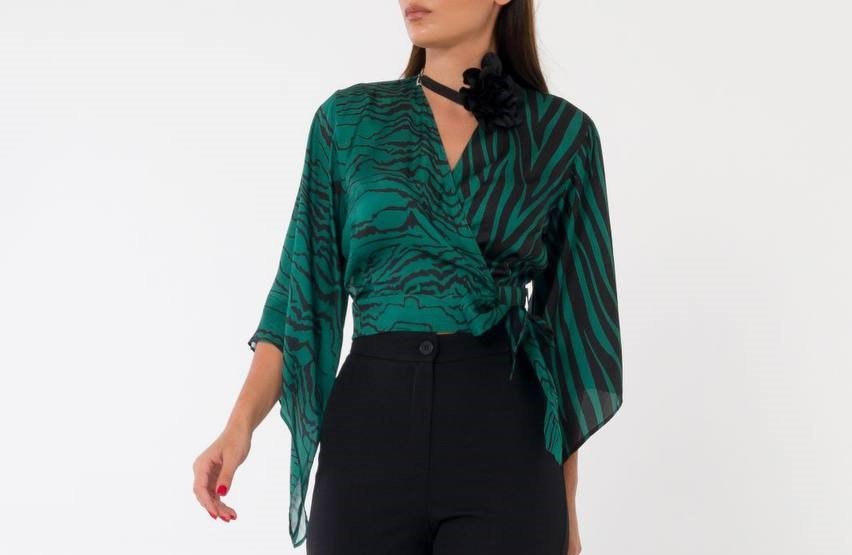 WRAP ANIMAL PRINT BLOUSE