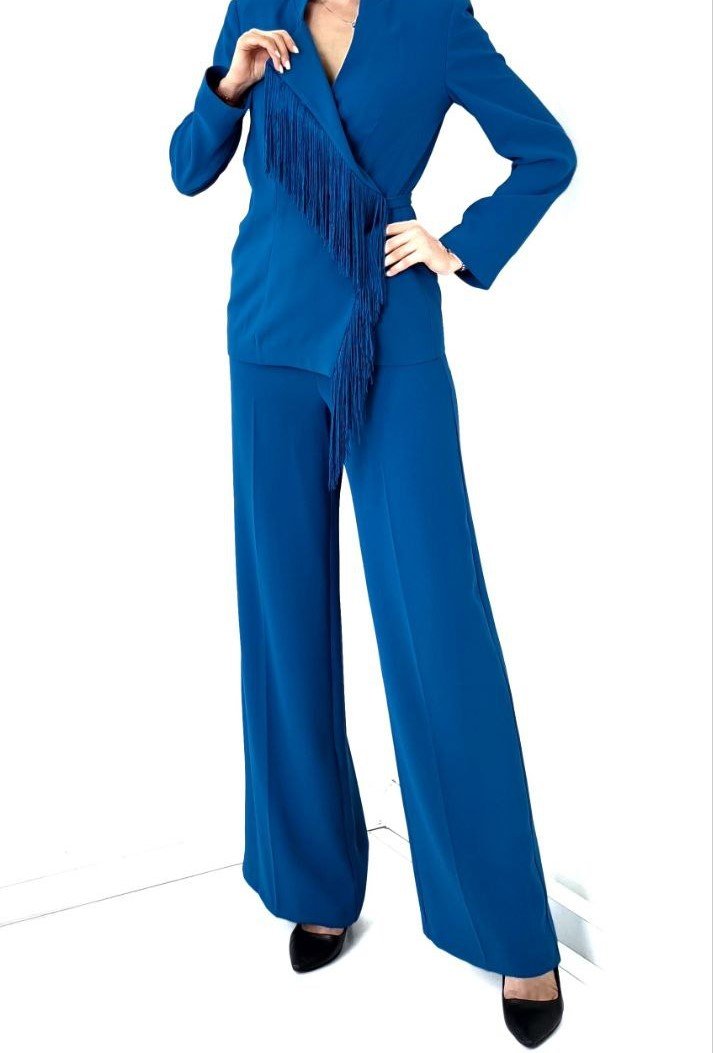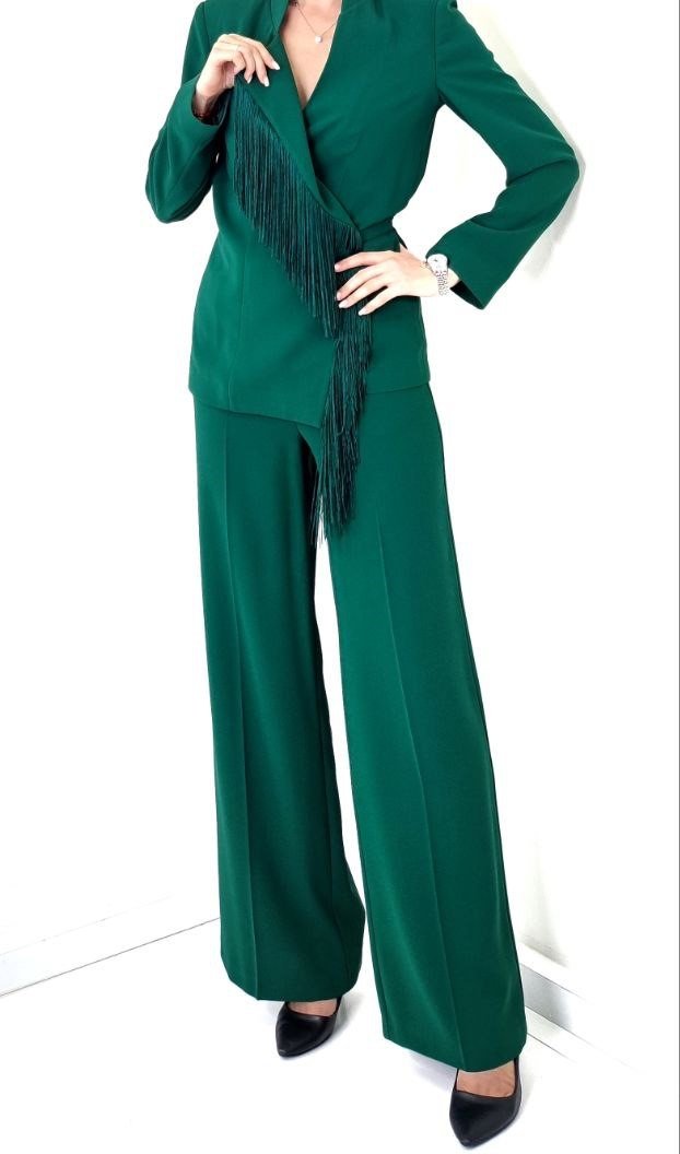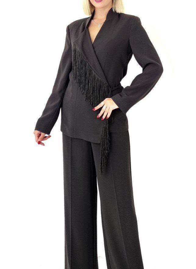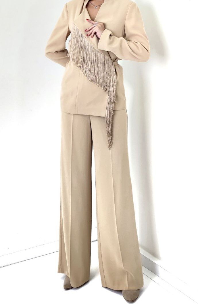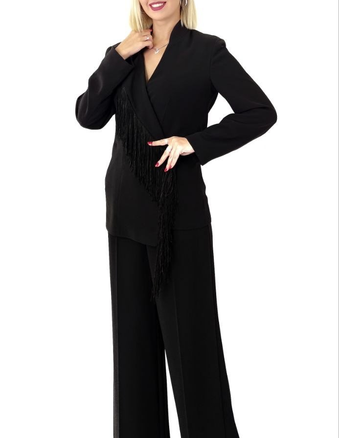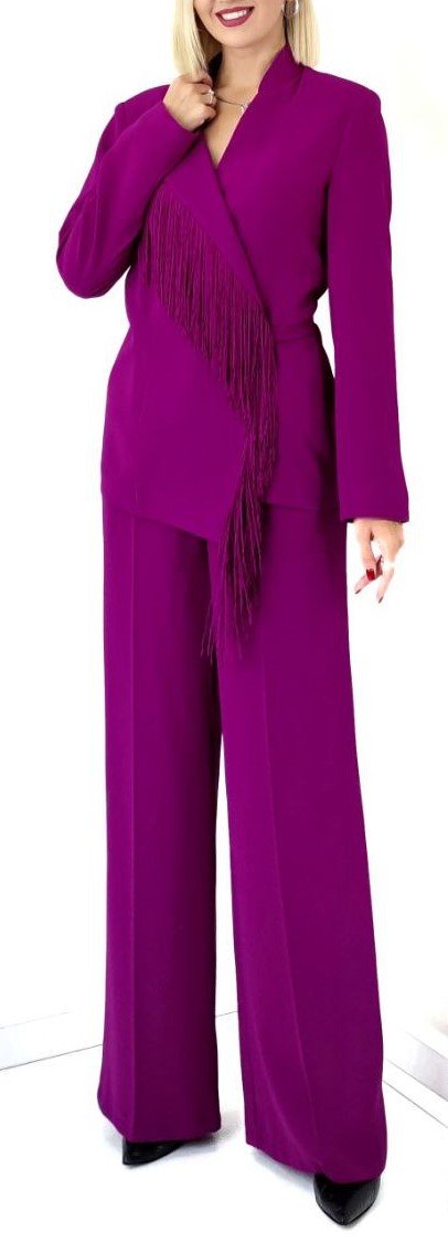 WRAP STYLE BLAZER WITH FRINGE DETAIL AND MATCHING PANTS
