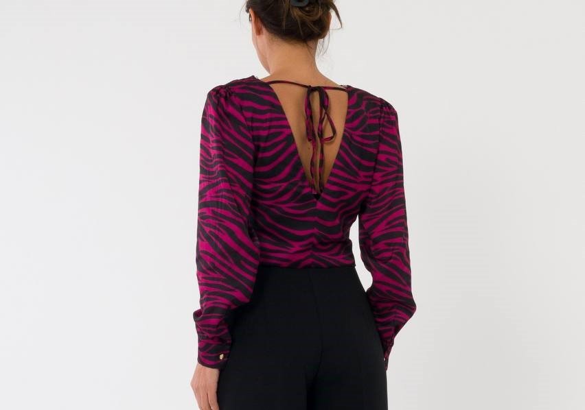 ZEBRA PRINT DRAPED NECK WITH OPEN BACK TIE