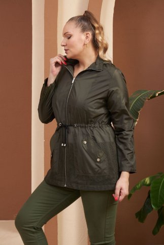 ZIPPER FRONT JACKET WITH DRAWSTRING WAIST AND SNAP DETAILS