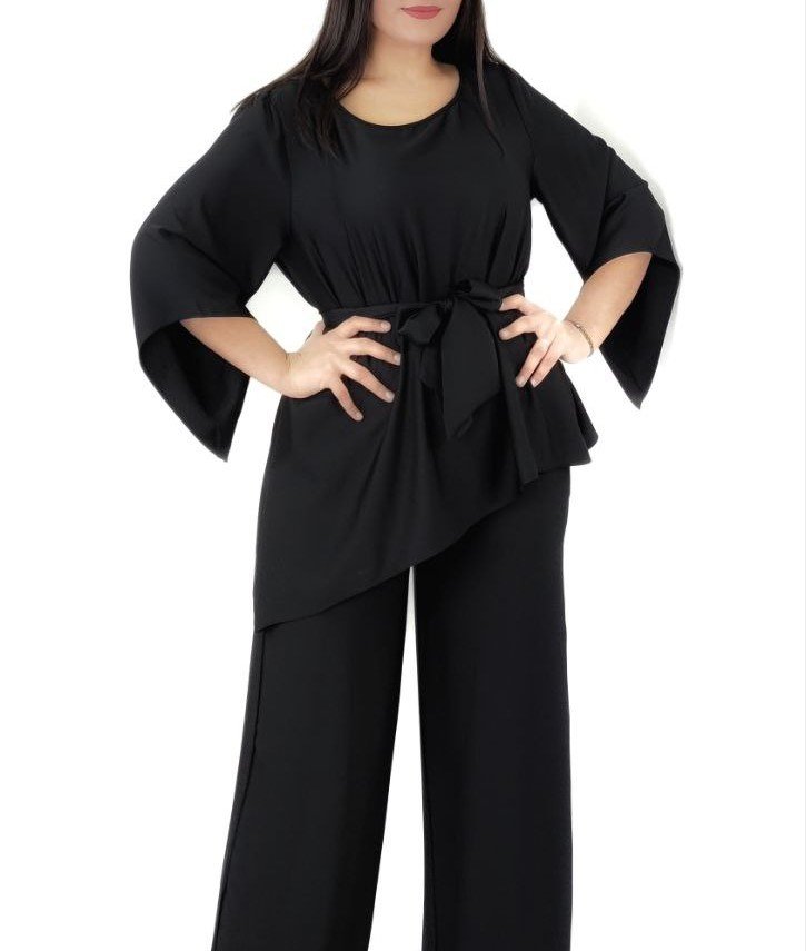ANGLED CAPE SLEEVE TOP AND MATCHING PANTS