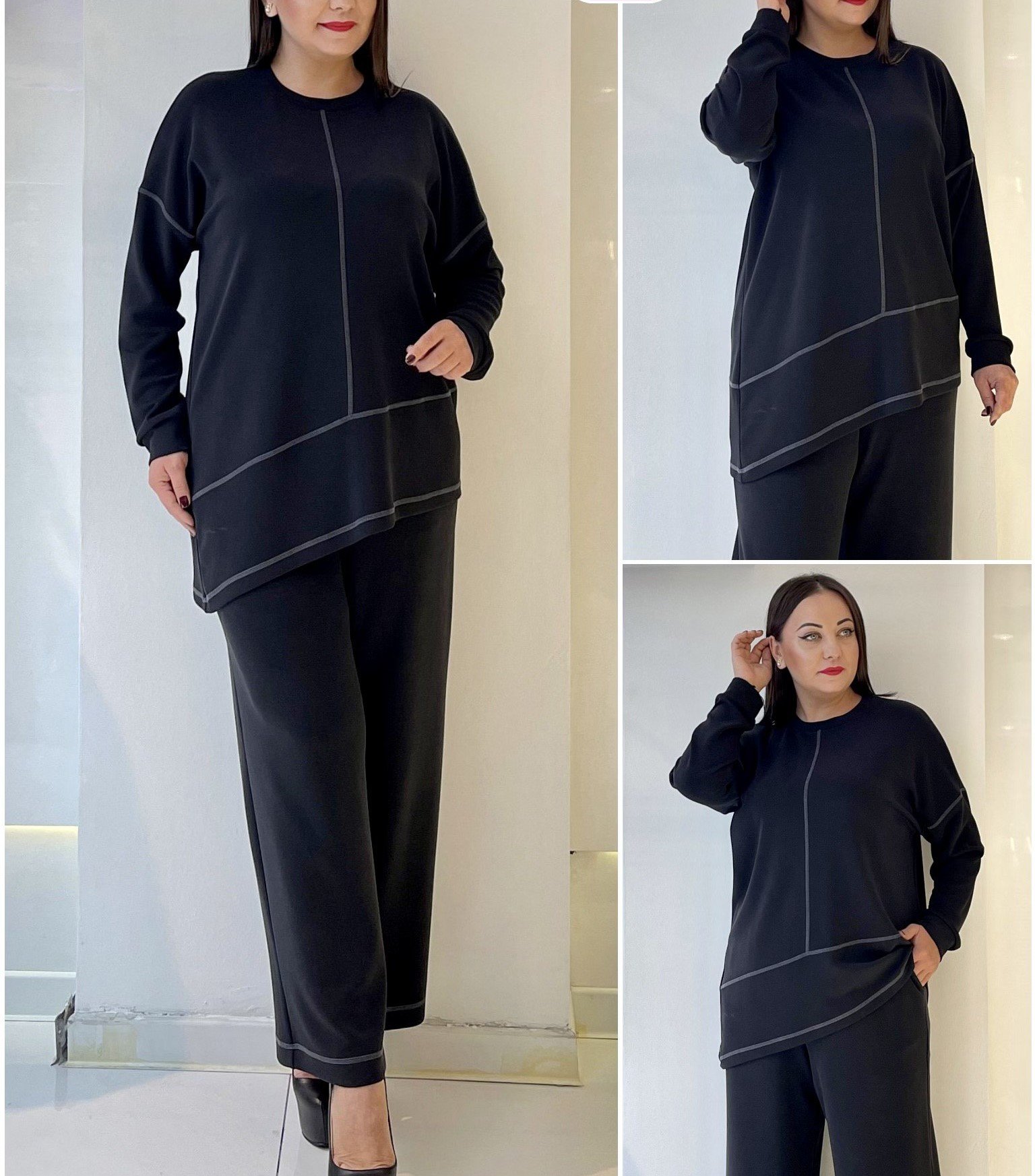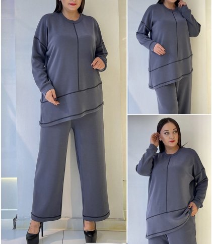 ANGLULAR TOP WITH PIPING DETAIL AND PANTS