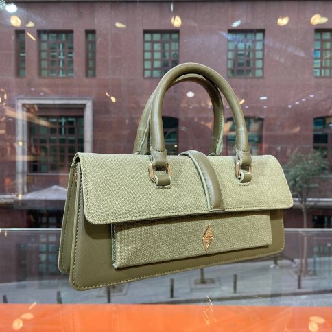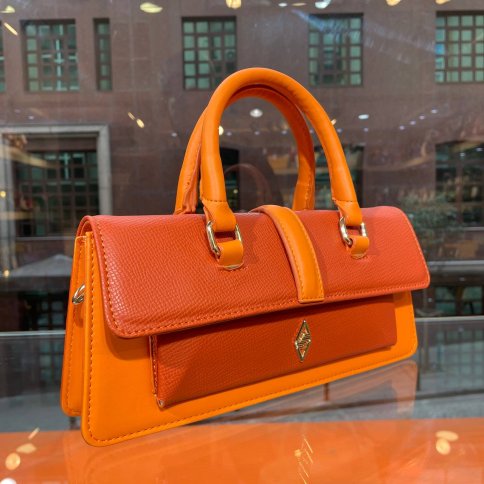 2 TONE COLOR FLAP FRONT BAGQUETTE BAG