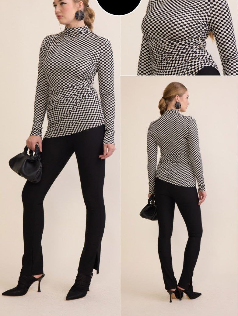 CHECKED HIGH NECK TOP