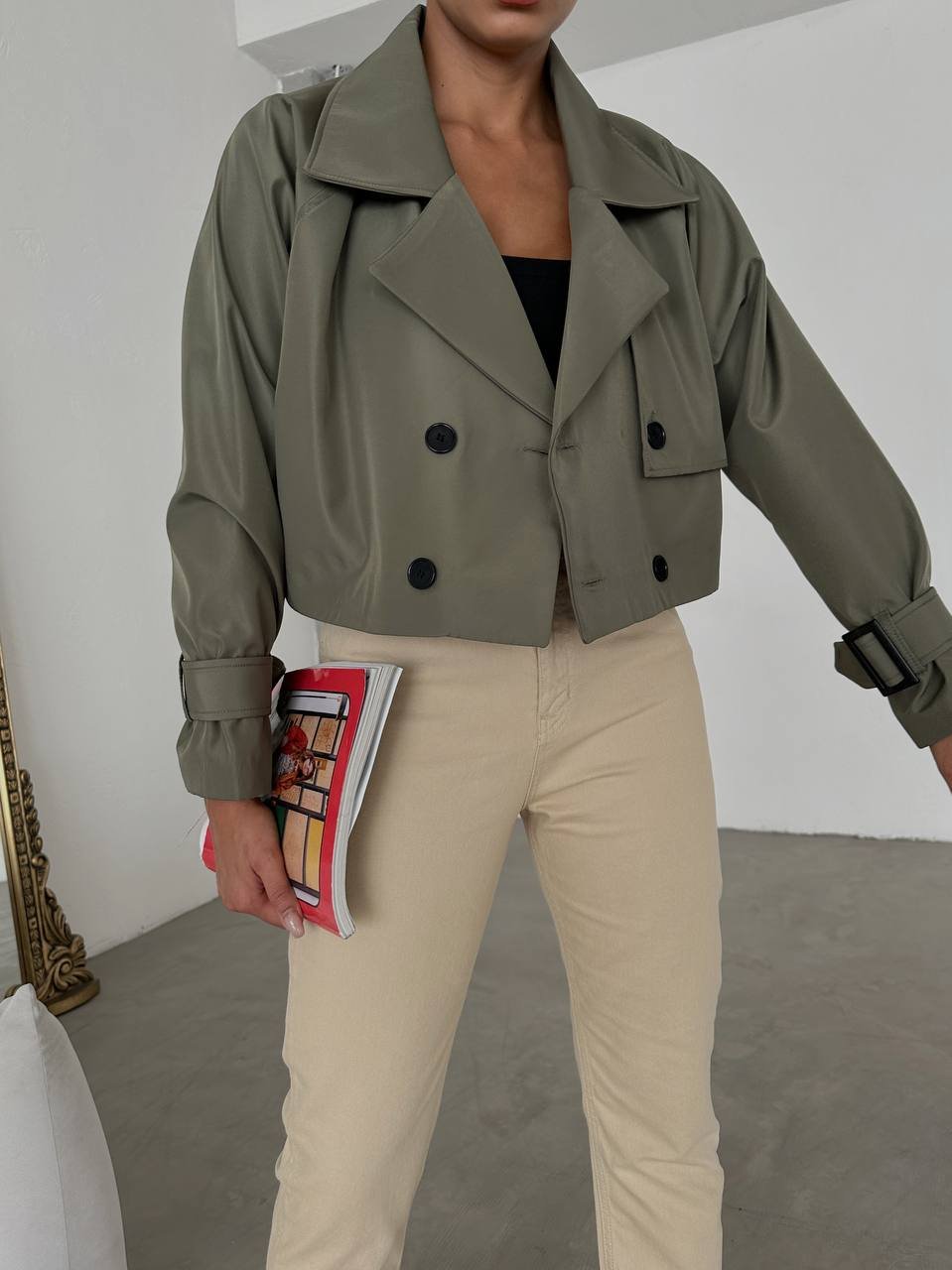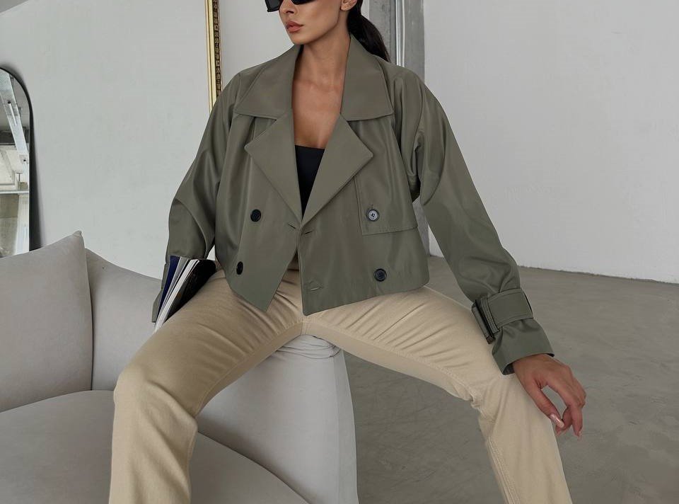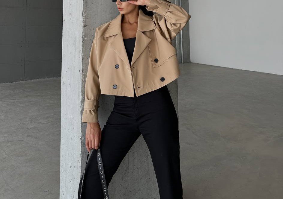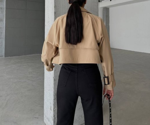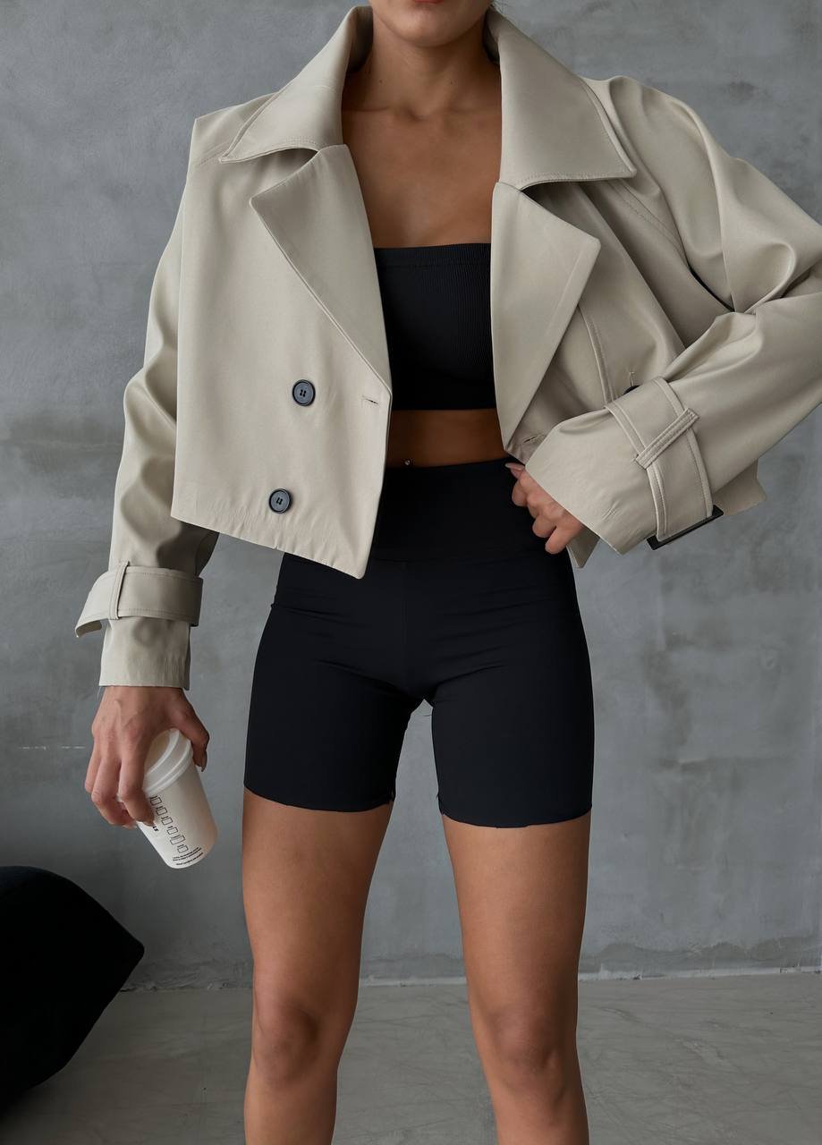 COTTON GLOSSY DOUBLE BREASTED CROP JACKET