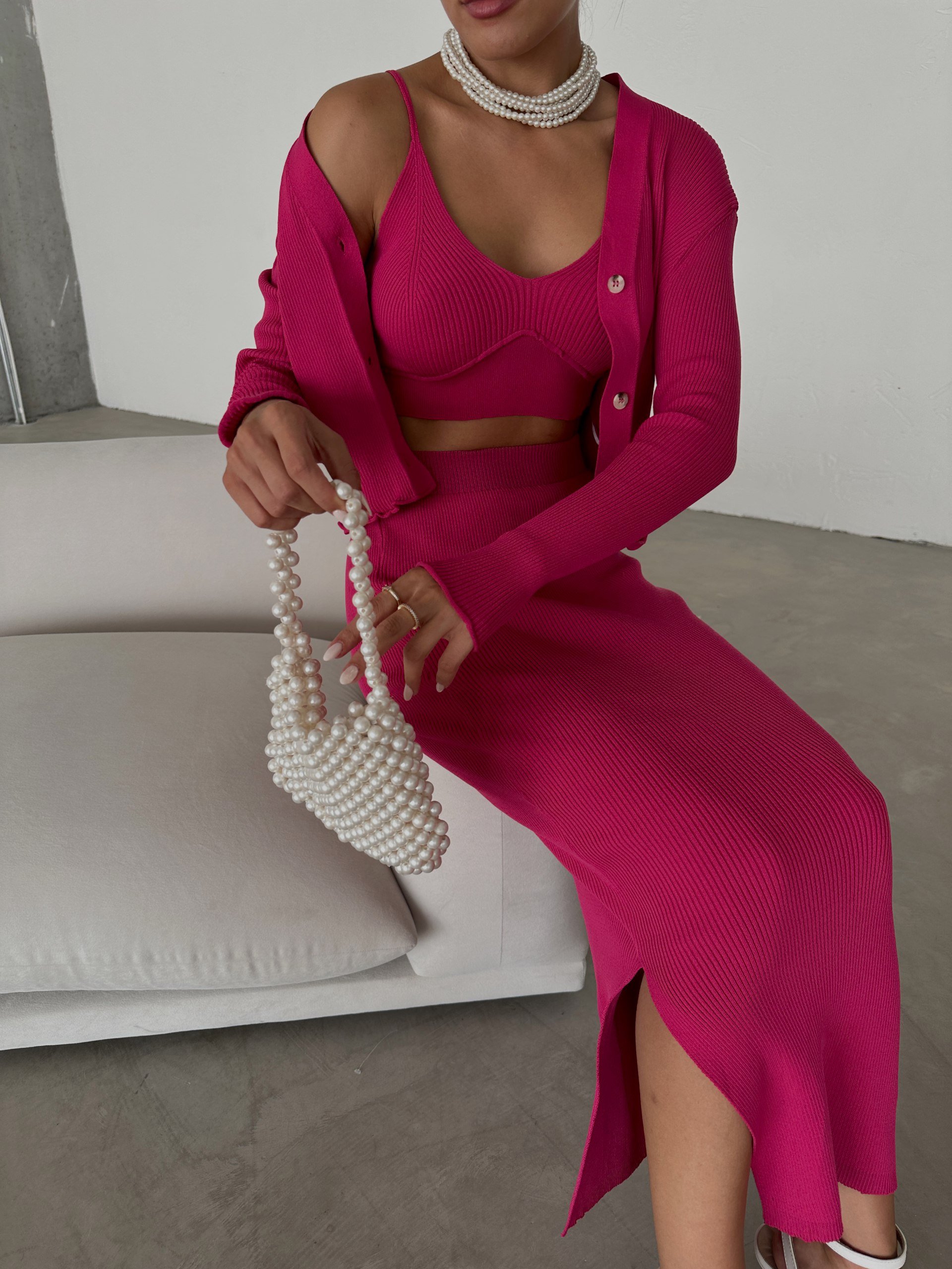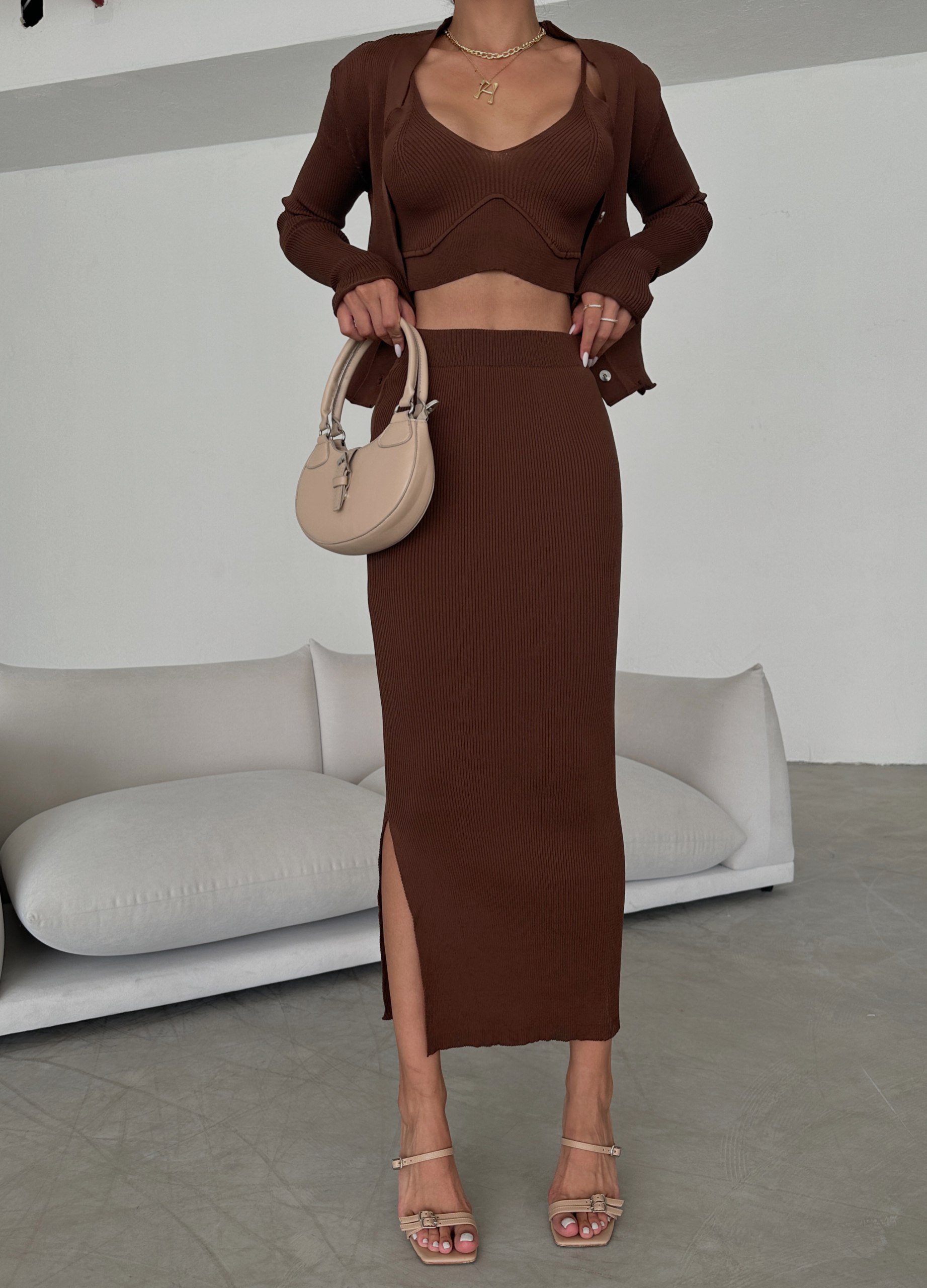 CROP JACKET OVER KNIT TANK AND MIDI BODY CON SKIRT