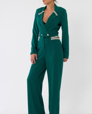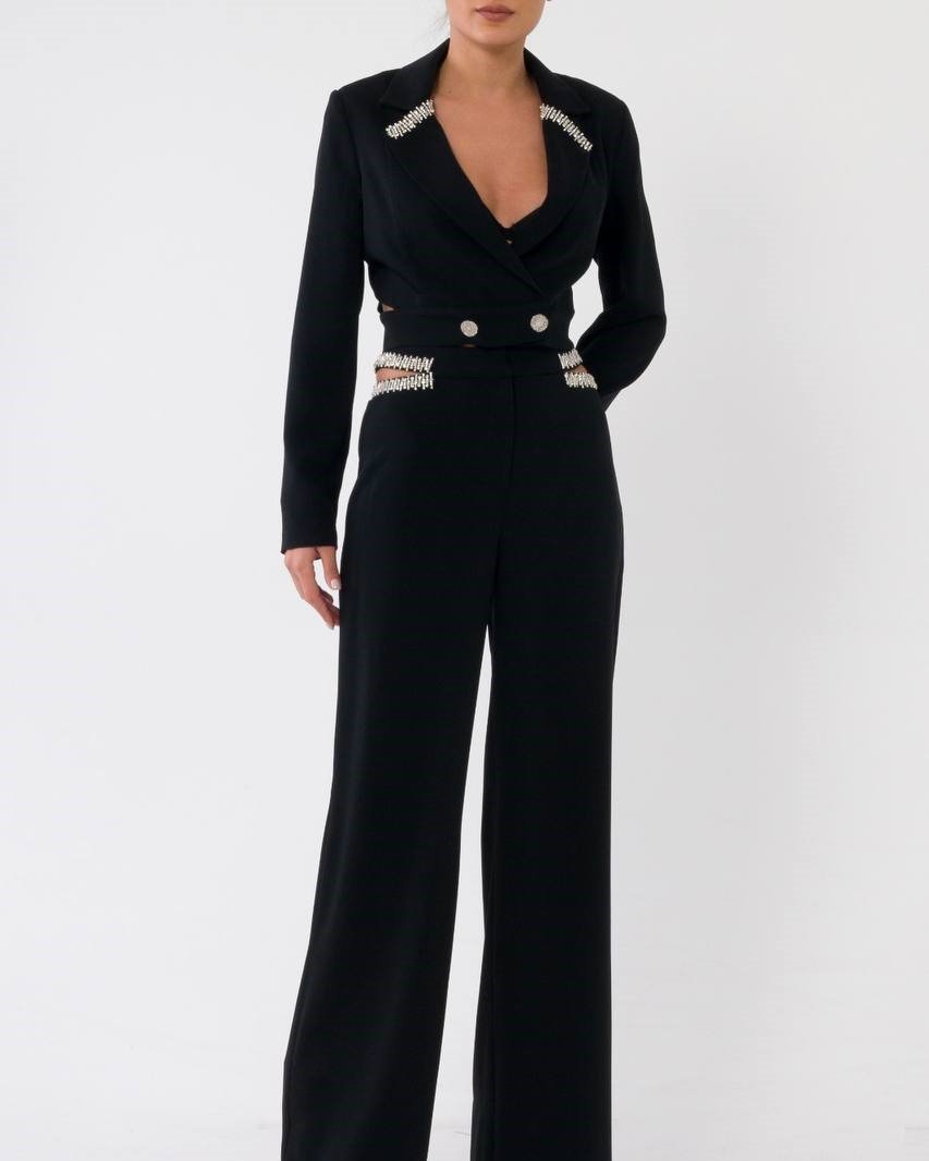 CROP JACKET WITH DIAMANTE DETAIL AND PANTS WITH DIAMANTE CUTOUTS