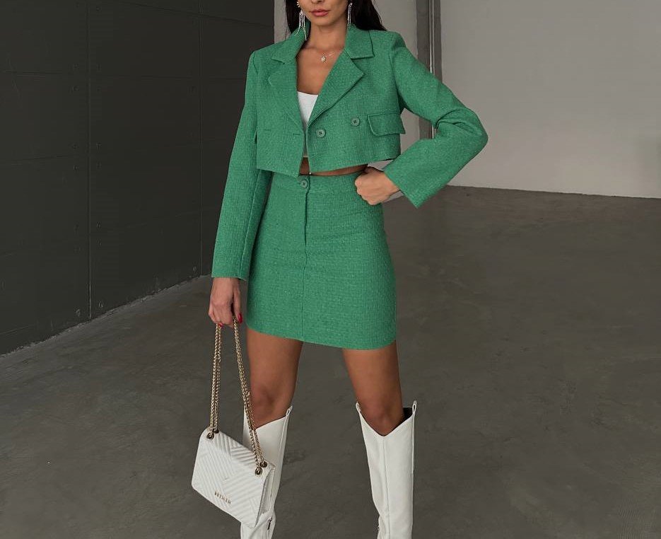 CROP JACKET WITH POCKET DETAIL AND MATCHING MINI SKIRT