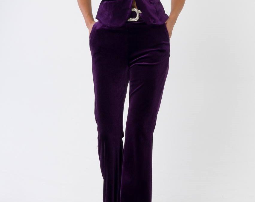 CRUSHED VELVET FLARED PANTS