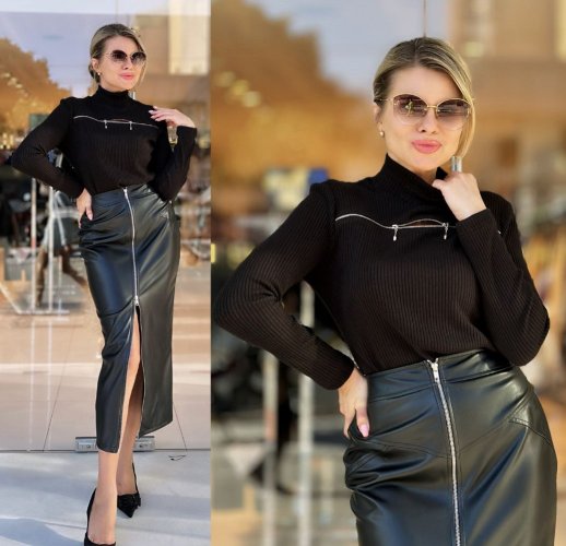 DOUBLE ZIPPER FAUX LEATHER MIDI SKIRT