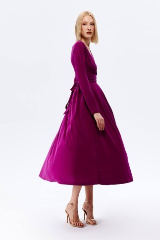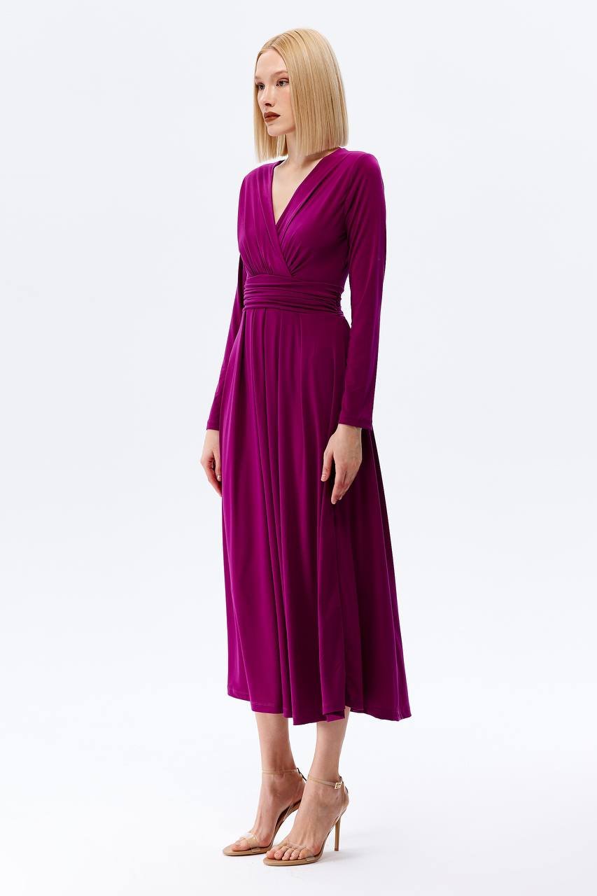 SILKY MIDI V NECK WRAP FLARED DRESS