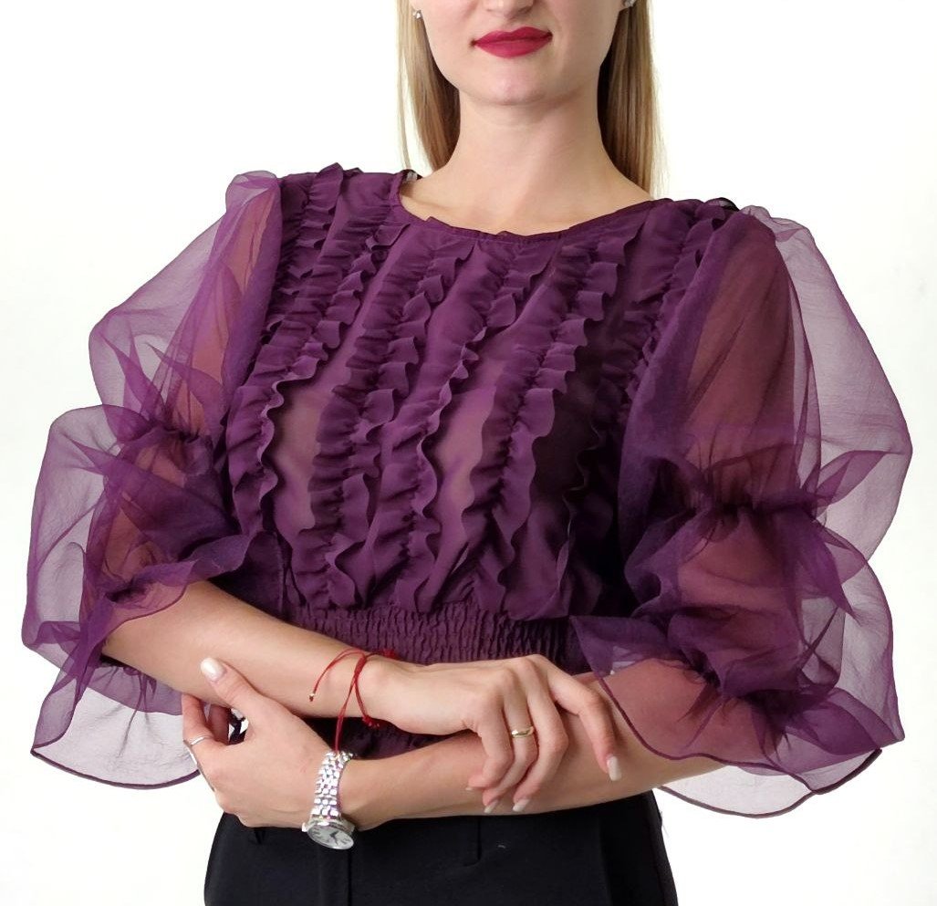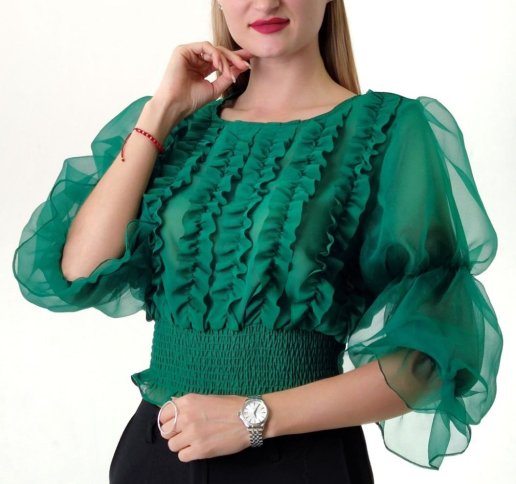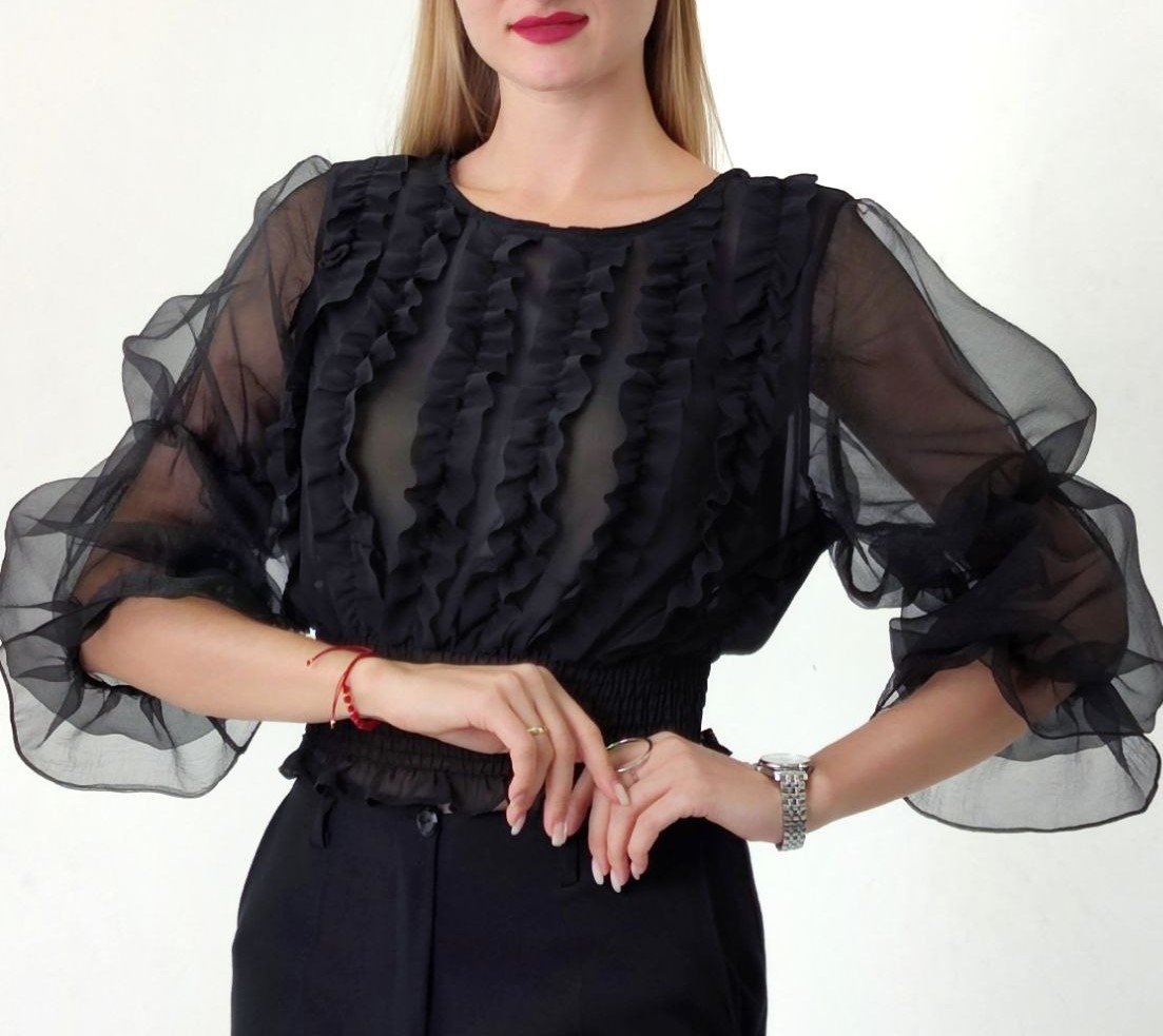 ELASTIC CROP SHEER RUFFLE BLOUSE