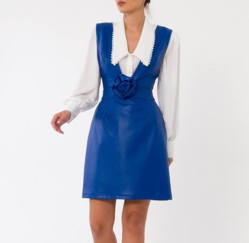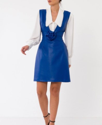 FAUX LEATHER SLEEVELESS FLARED DRESS