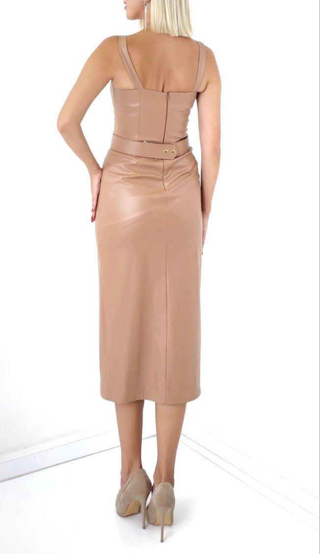 FAUX LEATHER SLIT FRONT MIDI DRESS