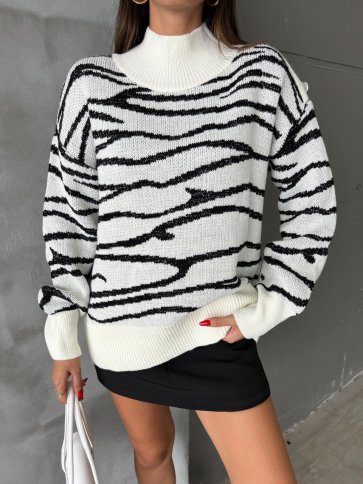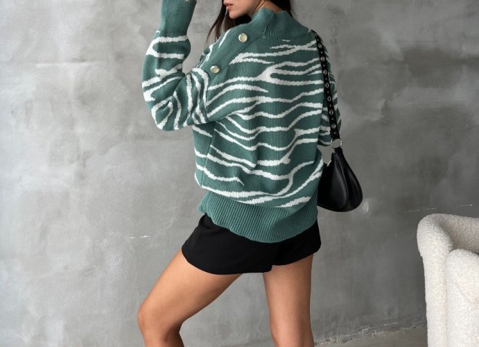 PATTERNED SWEATER WITH GOLD BUTTON DETAIL