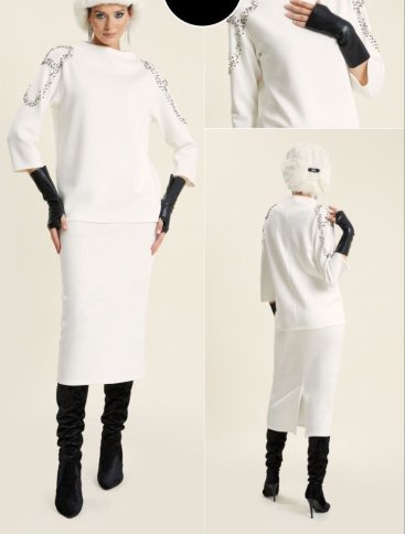 LONG TOP WITH DIAMANTE DETAIL AND SLIM MIDI SKIRT
