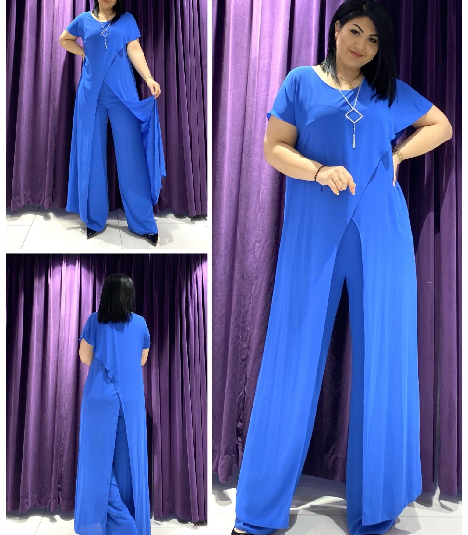 MAXI SHORT SLEEVE TOP WITH OPEN FRONT AND MATCHING PANTS
