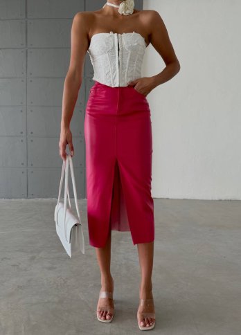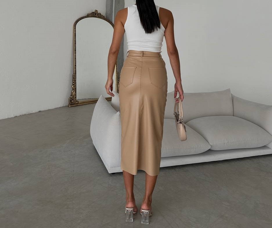 MIDI FAUX LEATHER FRONT SLIT SKIRT