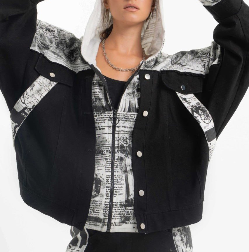 NEWSPAPER PRINT OVERSIZED JACKET