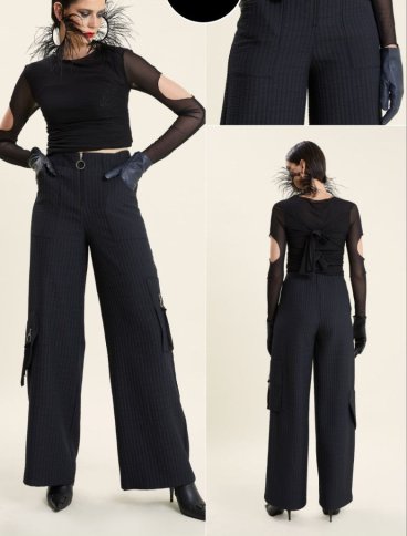 PINSTRIPE ZIPPER FRONT CARGO FLARED PANTS