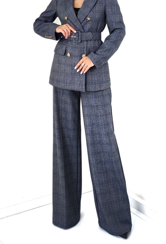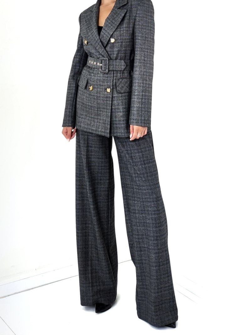 PLAID PATTERN DOUBLE BREASTED JACKET WITH BELT