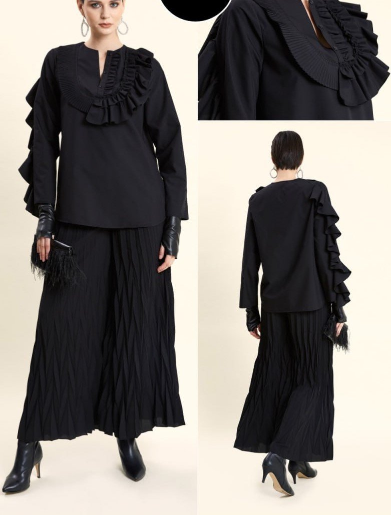 RUFFLE DESIGN SLEEVE AND YOKE SHIRT