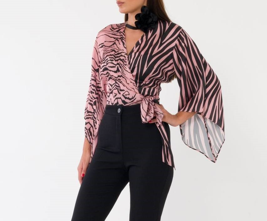 WRAP ANIMAL PRINT BLOUSE