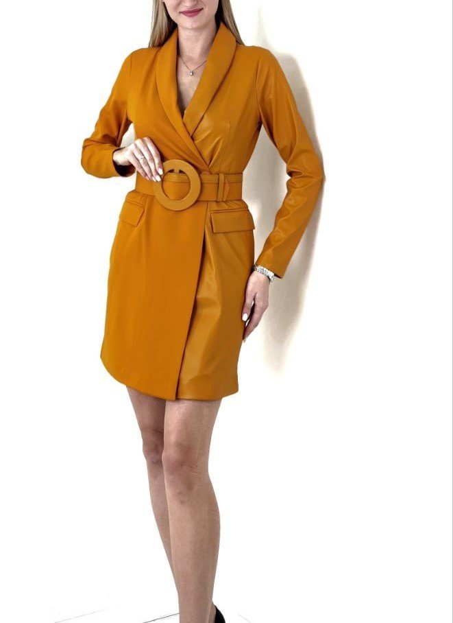 WRAP FAUX LEATHER AND FABRIC DRESS WITH BELT
