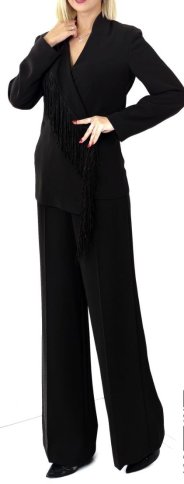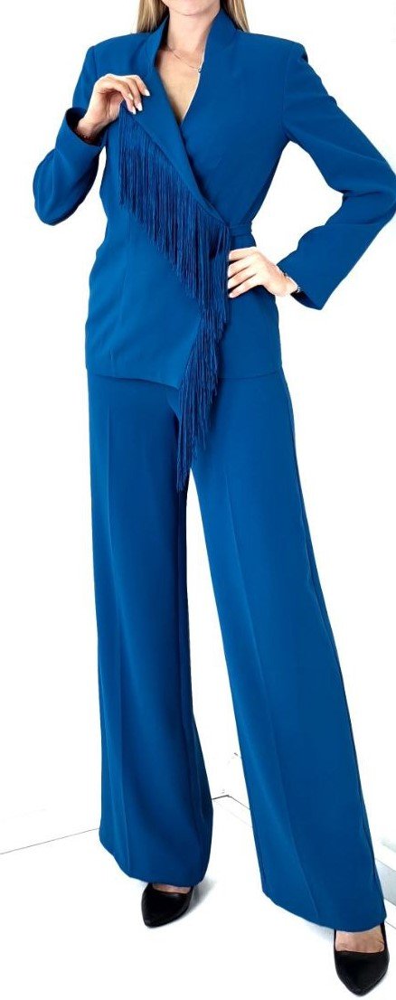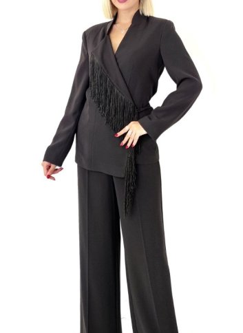 WRAP STYLE BLAZER WITH FRINGE DETAIL AND MATCHING PANTS