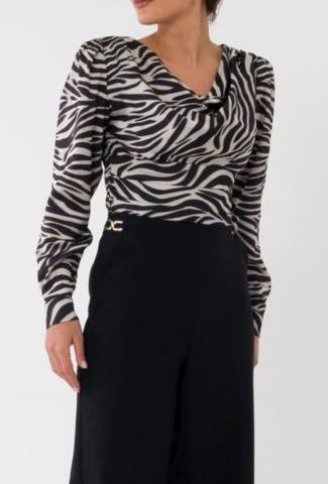 ZEBRA PRINT DRAPED NECK WITH OPEN BACK TIE