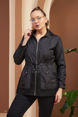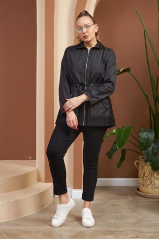 ZIPPER FRONT JACKET WITH DRAWSTRING WAIST AND SNAP DETAILS